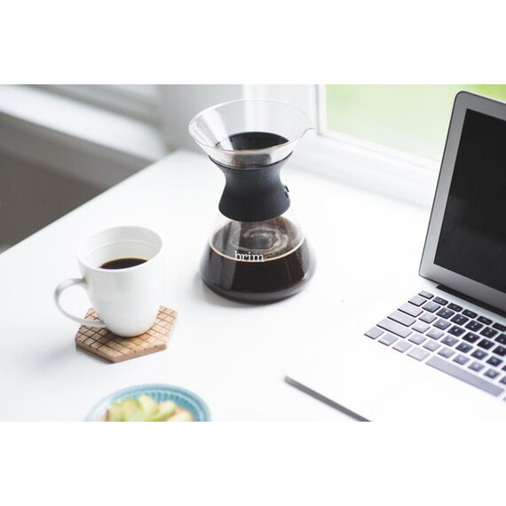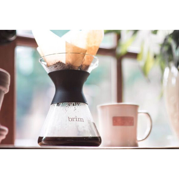 Brew to perfection with this Brim pour-over coffee kit. The glass decanter lets you make up to six cups to serve an intimate crowd, and the laser-etched permanent filter ensures optimal amounts of water and grounds to enhance the richness of your beverage. The silicone sleeve of this Brim pour-over coffee kit provides a comfortable grip.