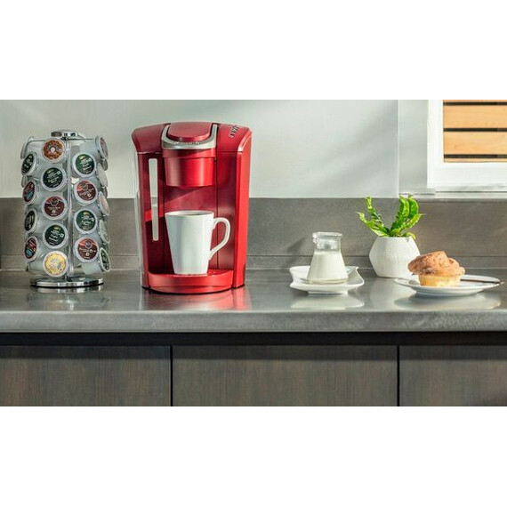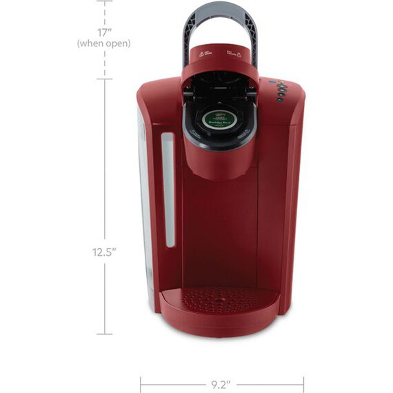Brew a steaming mug of coffee or tea in under a minute with this Keurig K-Select brewer. Quiet Brew technology ensures the early morning coffee routine is silent and tranquil, and the 52-oz. reservoir requires less refills. Hit the Strong Brew button on this vintage red Keurig K-Select brewer for busy mornings.
