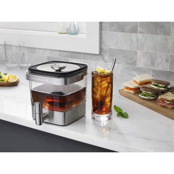 Make smooth iced coffee with this 28-oz. KitchenAid cold brew coffee maker. It’s a dual-purpose serving and brewing container, and helpful fill level markings on the reusable stainless steel steeper let you easily create the perfect beverage with precision. This KitchenAid cold brew coffee maker has a built-in tap that make it easy to dispense right from your refrigerator.