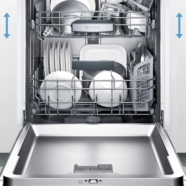 Automate after dinner cleanup with this Bosch dishwasher. Its supremely quiet operation at 42 dBA won't interfere with your daily life, and the flexible third rack offers more room for taller dishes. Plus, the tall stainless steel tub that retains heat and resists corrosion.