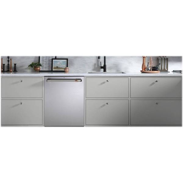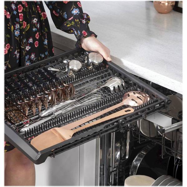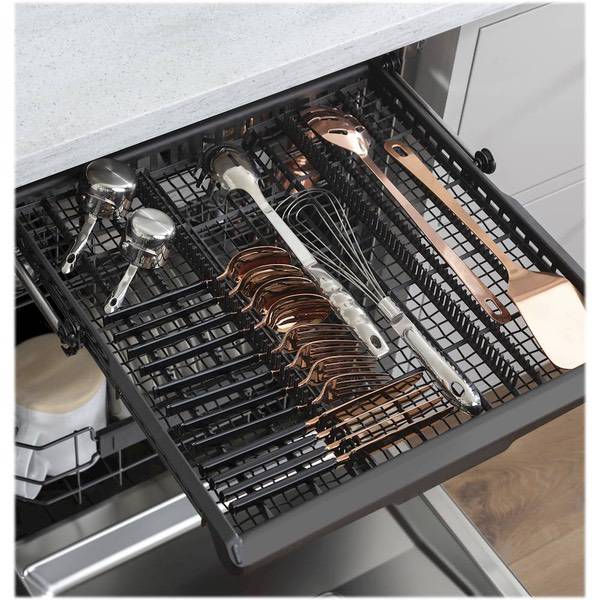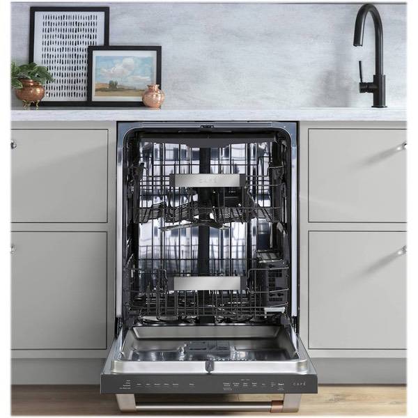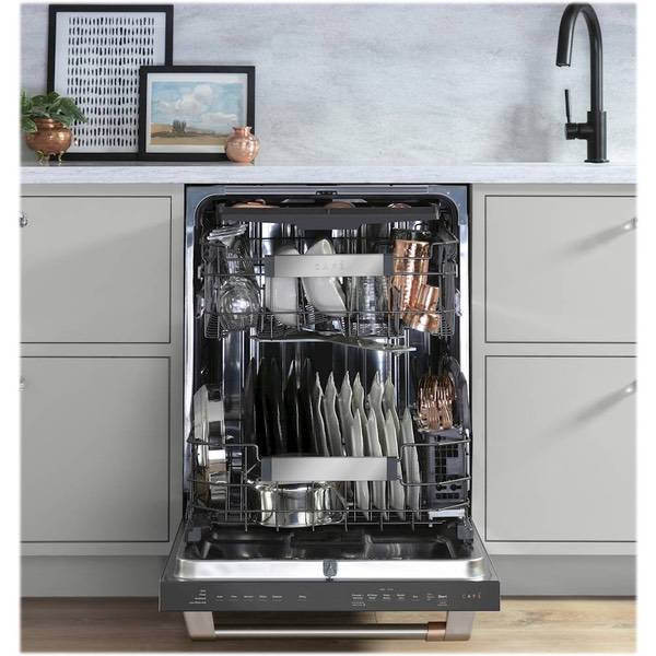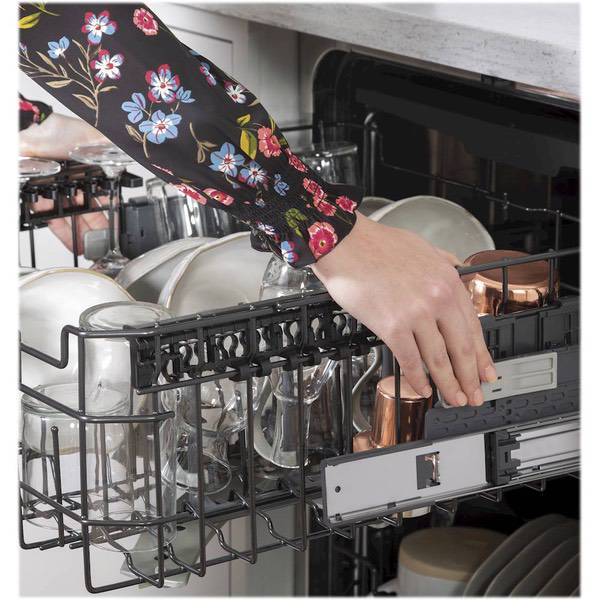Enjoy the design of this Cafe built-in dishwasher. The top-control position helps prevent children from disrupting washing cycles, and the adjustable upper rack provides flexibility for varying dish sizes. This Cafe built-in dishwasher has up to 16 place settings for handling large loads and features an ultra-dry system that means dishes can be used immediately after a wash cycle.