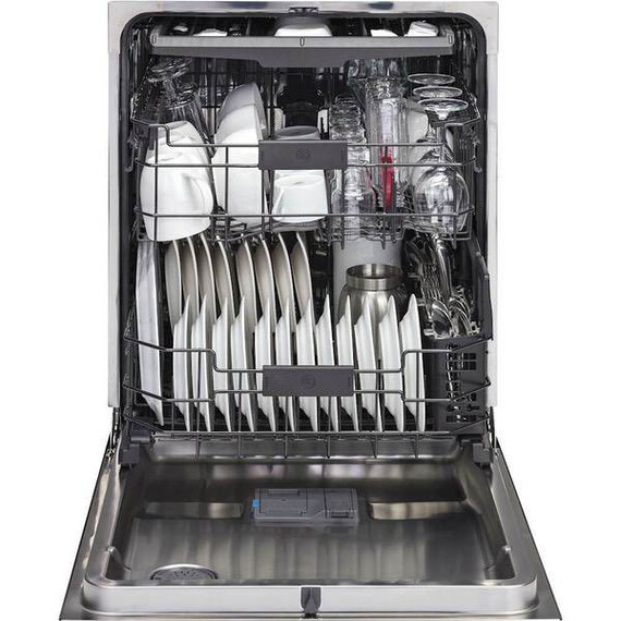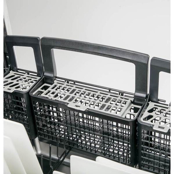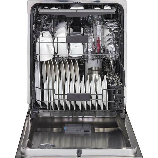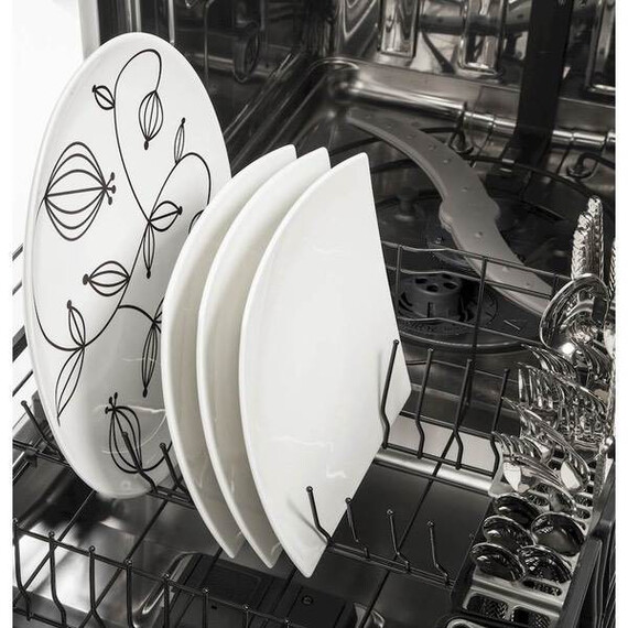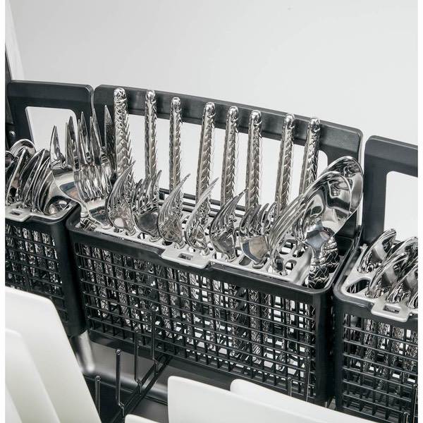 Clean dishes and cookware efficiently with this GE dishwasher. Bottle jets, a separate top flatware rack and a multi-position lower rack with fold-down tines let you customize the arrangement of items inside the stainless steel interior. This GE dishwasher has a hard food disposer for convenient removal of larger particles during the cleaning cycle.
