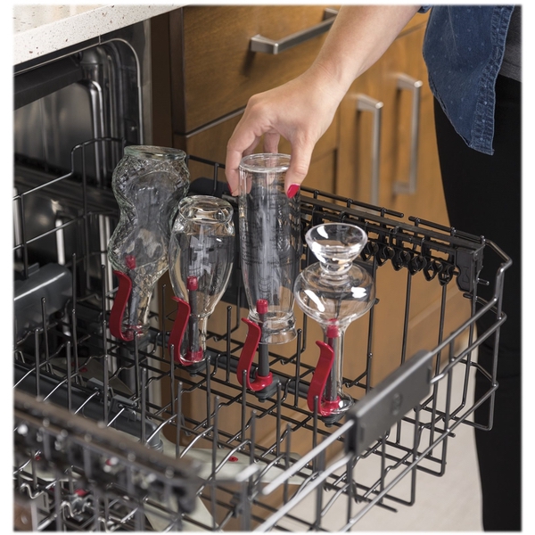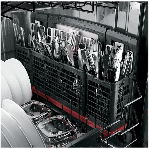 Get dishes clean with this GE Profile built-in dishwasher. Over 140 powerful cleaning jets leave dishes spot-free, and the convenient third rack provides additional space for smaller, more delicate items. Two wash zones let you clean smaller loads in the top or bottom rack of this GE Profile built-in dishwasher.