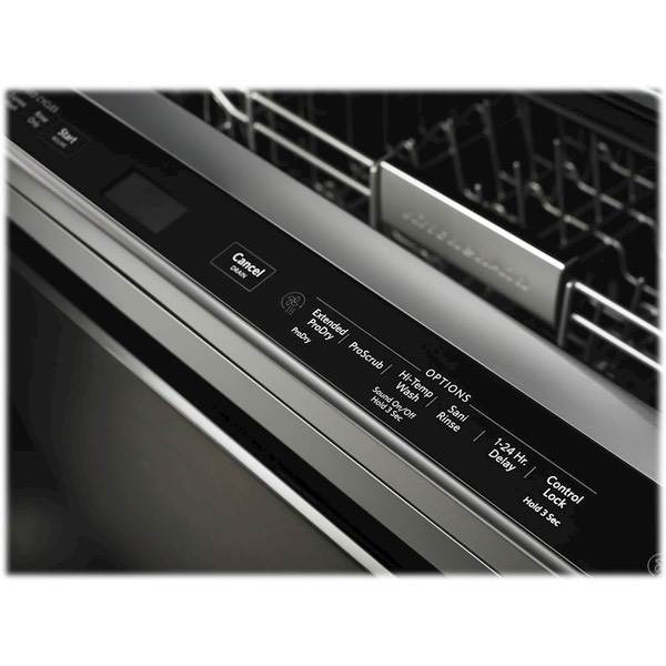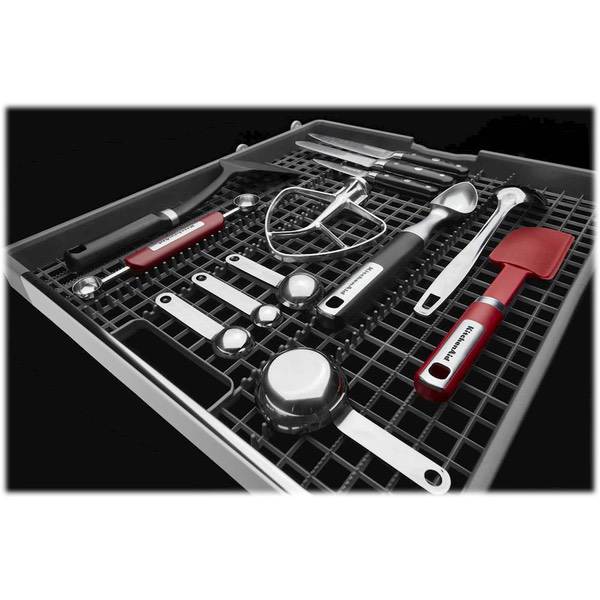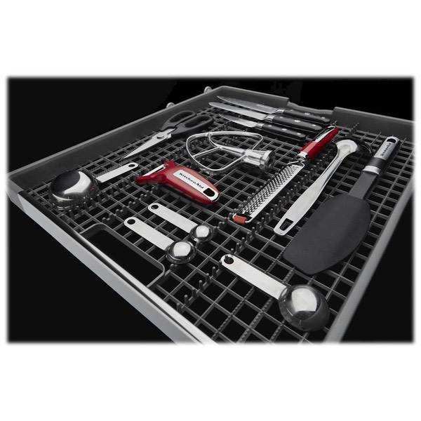 Enjoy the fingerprint-resistant PrintShield finish on this this KitchenAid built-in dishwasher to keep your kitchen looking its best. The third rack is ideal for long, flat utensils, mixer beaters, and food processor blades, and the ProWash cycle automatically makes adjustments during the wash to ensure optimal results. Enjoy speedy washes and extended drying cycles with this KitchenAid built-in dishwasher.