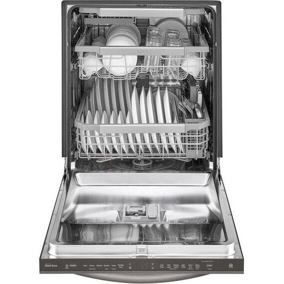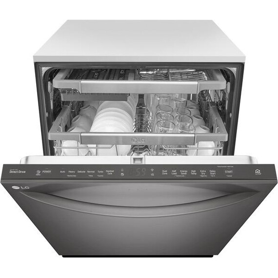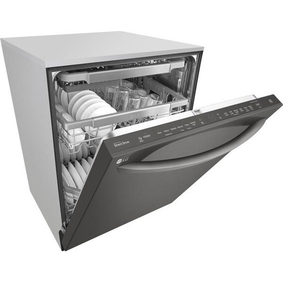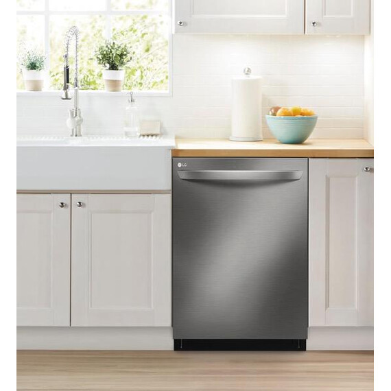 LG - 24" Top Control Smart Wi-Fi Enabled Dishwasher with QuadWash and Steel Tub with Light - PrintProof Black Stainless Steel
