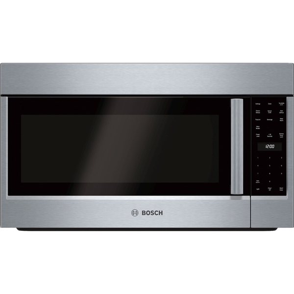 Keep kitchen counters uncluttered by installing this Bosch over-the-range microwave. The built-in multispeed vent removes cooking odors, smoke and greasy particles in the air, and the large interior lets you cook a variety of dishes. This Bosch over-the-range microwave has a bright LCD display that is easy to read in any lighting condition.