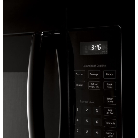 This GE JVM3160DFBB over-the-range microwave features Express Cook options for efficient food preparation and convenience cooking controls for simple customization. A 2-speed, 300 cfm exhaust fan offers powerful ventilation.