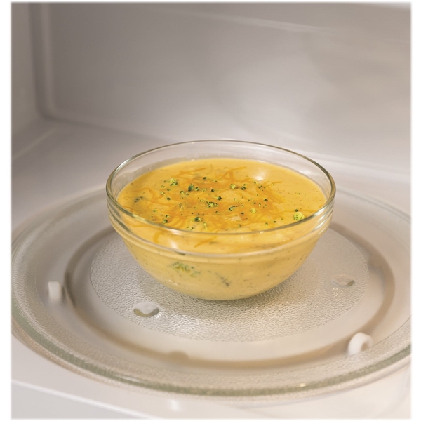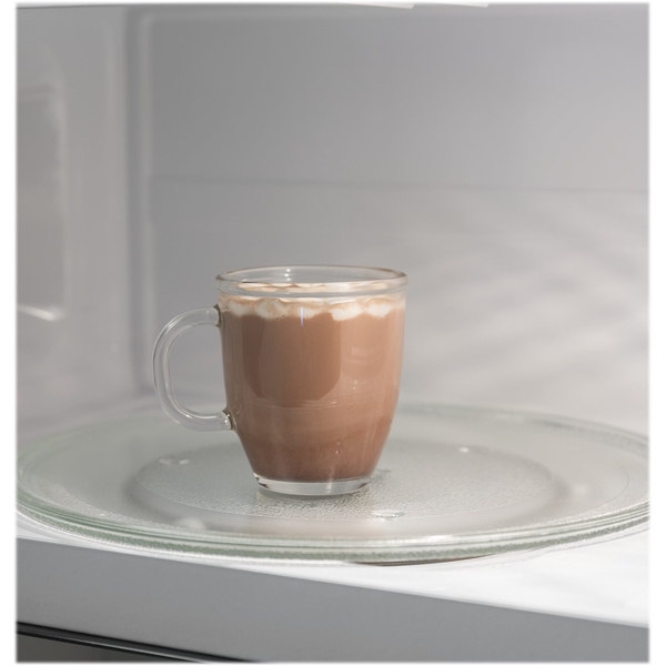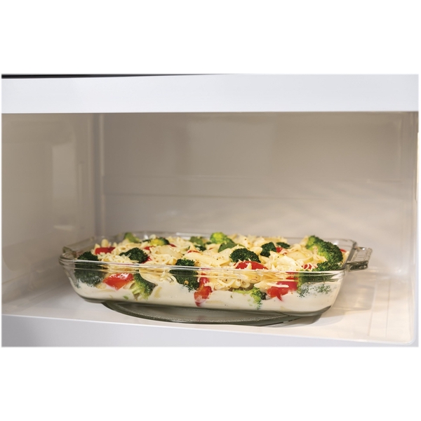 Melt butter or reheat leftovers with this 1.7 cu. ft. GE over-the-range microwave. Its 11.5-inch recessed glass turntable accommodates large platters, and the halogen light underneath increases the visibility of the cooktop. This black stainless steel GE over-the-range microwave has a two-speed exhaust fan to help whisk away cooking odors.