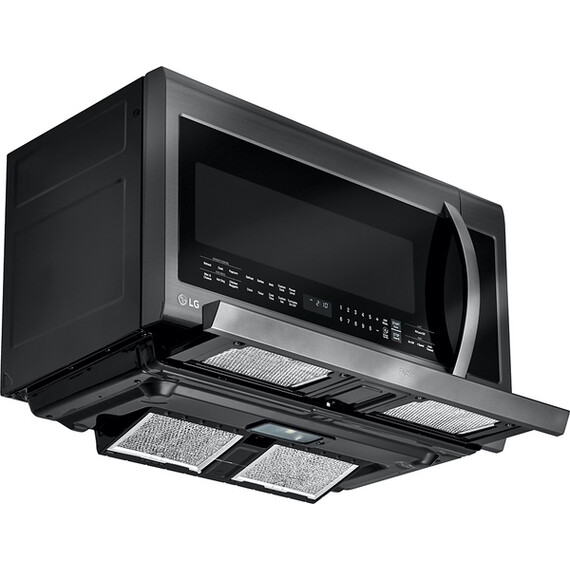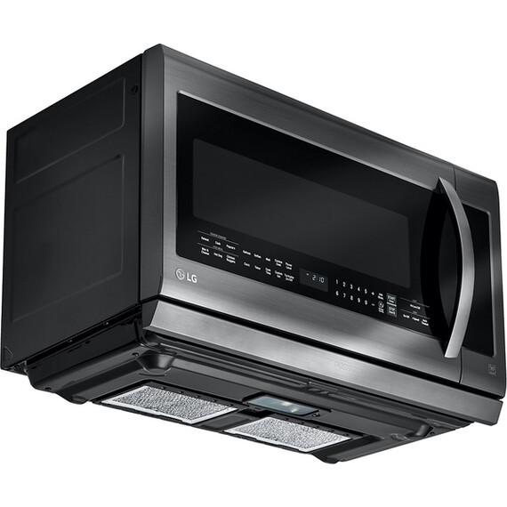 LG - 2.2 Cu. Ft. ExtendaVent 2.0 Over-the-Range Microwave with Sensor Cooking - PrintProof Black stainless steel