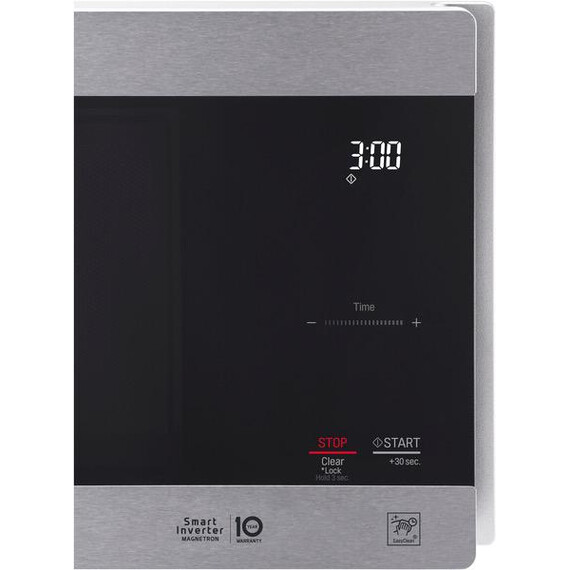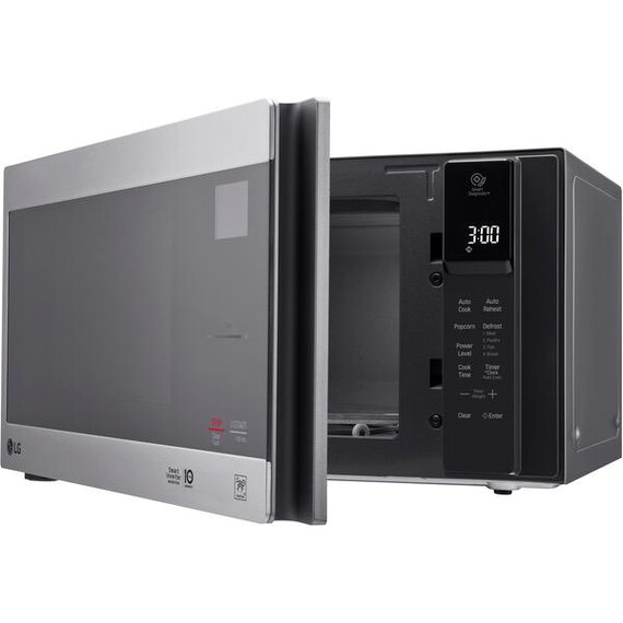 Quickly heat up your food with this LG countertop microwave. It has a stainless steel look so that it matches the rest your kitchen decor, yet it warms up food quickly and efficiently thanks to the powerful microwave generator inside. This LG countertop microwave includes an antibacterial surface for easier cleaning and sanitization.
