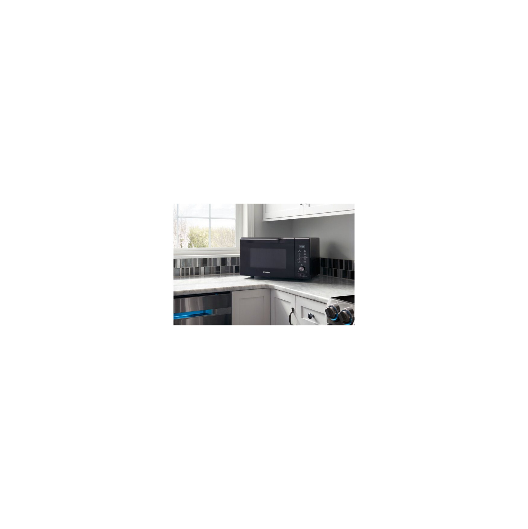 Pop a bag of popcorn or heat up the evening meal in this Samsung midsize microwave, which uses 900W for efficient heating. Power convection lets you recreate the taste of oven-cooked foods, and ten power settings offer versatility. This Samsung midsize microwave comes with a turntable, ensuring your snacks and meals are evenly heated.
