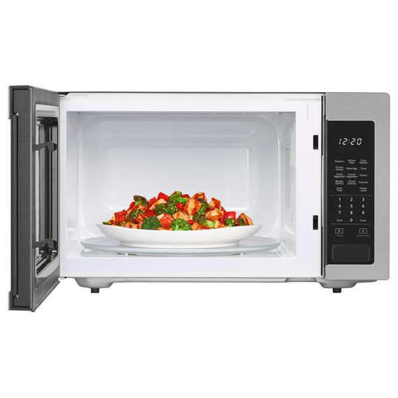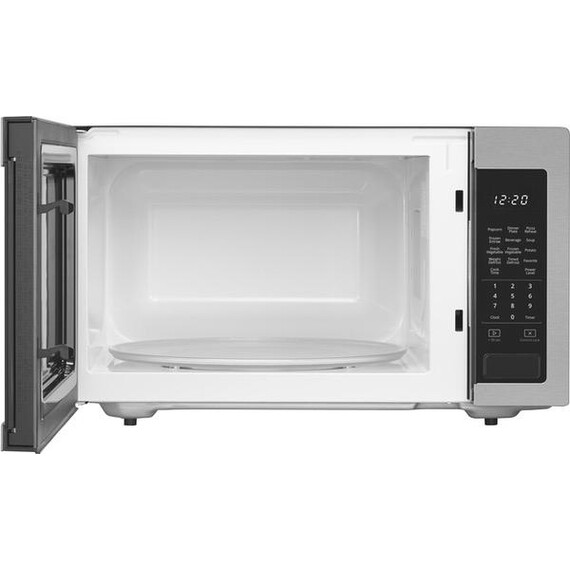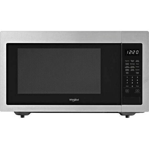 Get dinner on the table fast with this 1200W Whirlpool countertop microwave. The sensors measure humidity during cooking to turn out perfect dishes, and its dedicated button lets you enjoy popcorn whenever you want it. Add 30 seconds to your cooking time with just the touch of a button on this 1.6 cu. ft. Whirlpool countertop microwave.