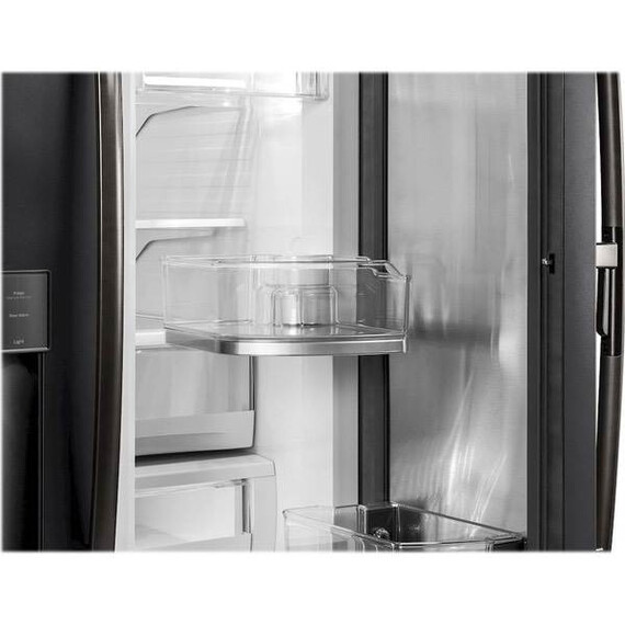Store and access favorite chilled foods with this 27.8 cu. ft. GE French door refrigerator. The door-in-door design and multiple drawers let you conveniently organize contents, and the bottom freezer keeps frozen foods close at hand. This GE French door refrigerator has LED lighting throughout the interior for enhanced visibility.