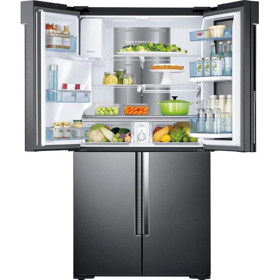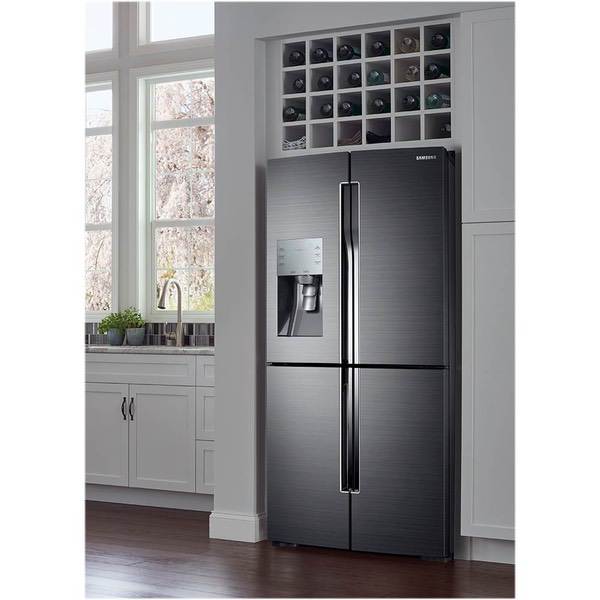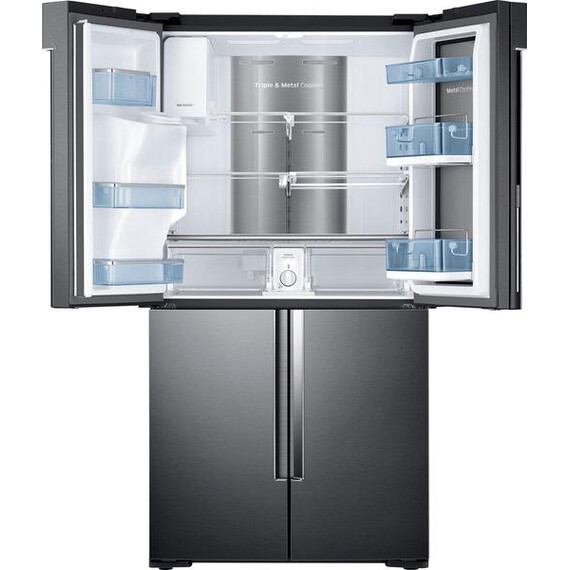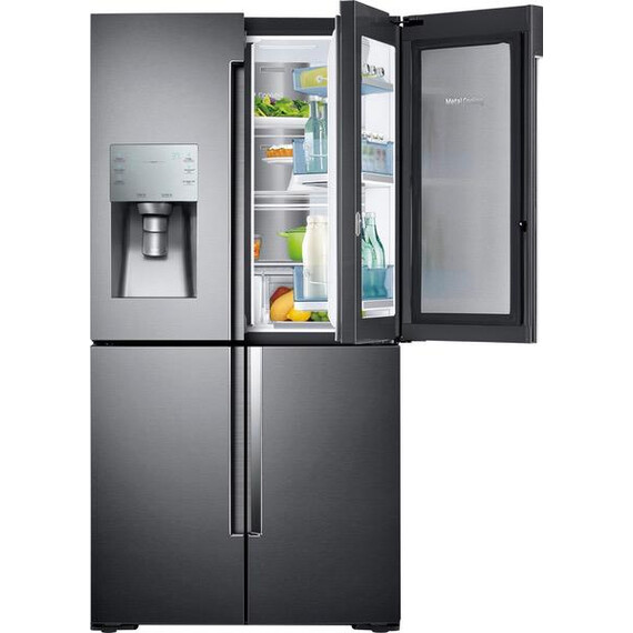Samsung - 27.8 Cu. Ft. 4-Door Flex French Door Refrigerator with Food ShowCase and Thru-the-Door Ice and Water - Fingerprint Resistant Black Stainless Steel
