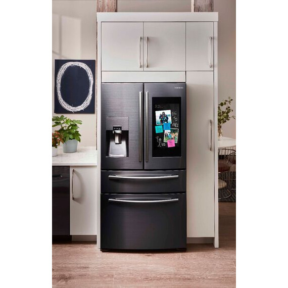 Samsung - Family Hub 27.7 Cu. Ft. 4-Door French Door Refrigerator - Fingerprint Resistant Black Stainless Steel