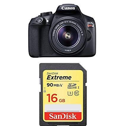 Canon Digital SLR Camera Kit [EOS Rebel T6] with EF-S 18-55mm Zoom Lens with SanDisk Extreme 16GB SDHC UHS-I Card - Black