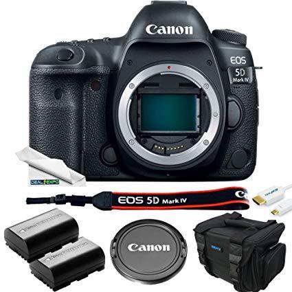 Make sure this fits by entering your model number. Bundle Includes : Canon EOS 5D Mark IV DSLR (Body Only) + 2x LP-E6 Spare Batteries + i3e-Pro Camera Gadget Bag + Mini HDMI Cable + Fiber Cloth (International Version) (No Warranty) 30.4MP Full-Frame CMOS Sensor - 3.2" 1.62m-Dot Touchscreen LCD Monitor DIGIC 6+ Image Processor - DCI 4K Video at 30 fps; 8.8MP Still Grab 61-Point High Density Reticular AF - Expanded ISO 102400; 7 fps Shooting Built-In GPS and Wi-Fi with NFC - Dual Pixel CMOS AF and Movie Servo AF