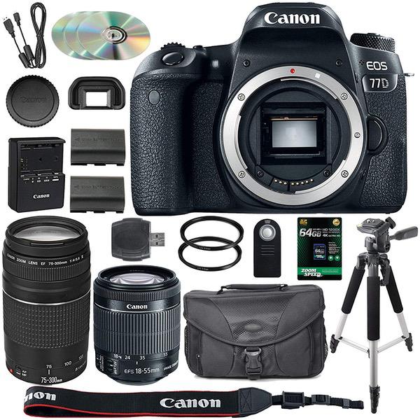 Canon EOS 77D Digital SLR Camera + 18-55mm IS STM Lens + 2 X 32GB + Telephoto + Wide-Angle Lens + Filters + Flash + Case + Tripod - International Version (No Warranty) (18-55mm IS STM)