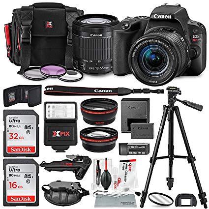 Canon EOS Rebel SL2 DSLR Wi-Fi Camera with EF-S 18-55mm STM Lens (Black) Bundle w/Flash + Lenses + Filters + 32&16GB + Xpix Tripods & Cleaning Kit