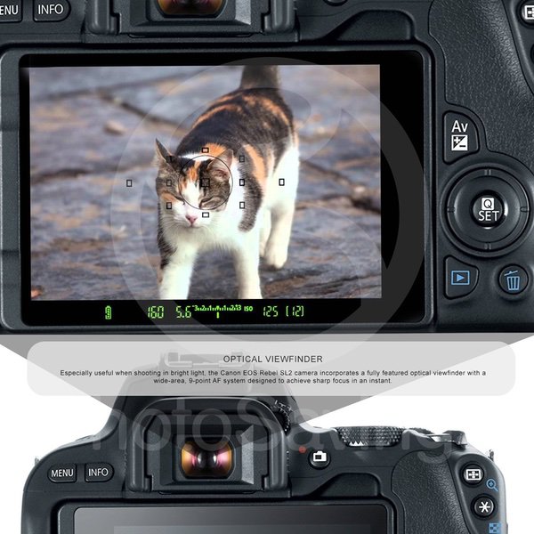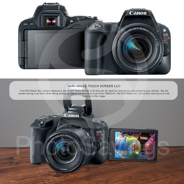 Make sure this fits by entering your model number. Achieve a thrilling new level of image quality and sharpness with the SL2's 24.2mp CMOS sensor and highly advanced DIGIC 7 Image Processor and share your creations with built-in Wi-Fi. Make your memories last a lifetime withFull HD 1080p Video Recording at 60 fps and for crystal clear sound make use of the external microphone jack. Get creative with the 3.0” 1.04m-dot vari-angle touchscreen LCD, professional with the Optical viewfinder, and shoot continuously up to 5fps. Included with the SL2 body is the versatile and compact EF-S 18-55mm f/4-5.6 IS STM Lens with image stabilization to improve overall image sharpness and clarity.