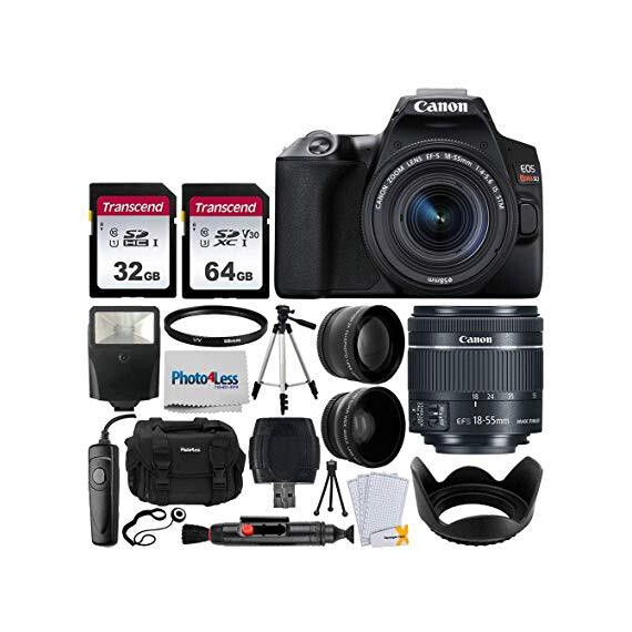 Canon EOS Rebel SL3 Digital SLR Camera (Black) + EF-S 18-55mm f/4-5.6 is STM Lens + 58mm 2X Professional Telephoto & 58mm Wide Angle Lens + 32GB & 64GB Memory Card + Case + Tripod + Flash + Lens Hood