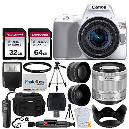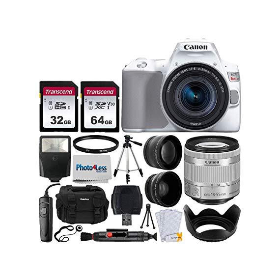 Canon EOS Rebel SL3 Digital SLR Camera (White) + EF-S 18-55mm f/4-5.6 IS STM Lens (Silver) + 58mm 2X Professional Telephoto & 58mm Wide Angle Lens + 32GB & 64GB Memory Card + Case + Tripod + Lens Hood