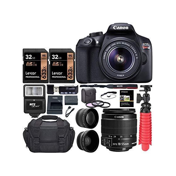 Canon EOS Rebel T6 Digital SLR Camera Kit with EF-S 18-55mm f/3.5 Lens, Two Lexar 32GB U3 Memory Cards, Lens Filters, Camera Bag, Flexi-Tripod, and Accessory Bundle