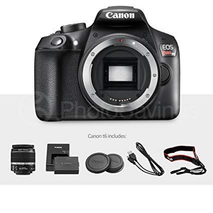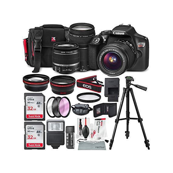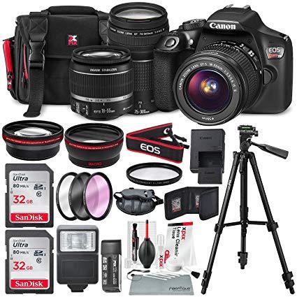 Canon EOS Rebel T6 DSLR Camera with EF-S 18-55mm f/3.5-5.6 is II Lens, EF 75-300mm f/4-5.6 III Lens, 64GB, Along with Fibertique Cleaning Cloth, and Xpix Cleaning Kit and Deluxe Accessory Bundle