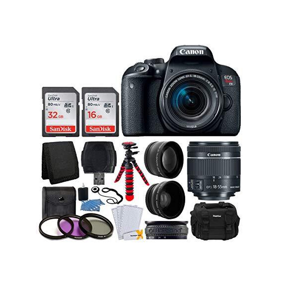 Canon EOS Rebel T7i Digital SLR Camera with EF-S 18-55mm f/4-5.6 is STM Lens + 58mm Wide Angle Lens + 2X Telephoto Lens + 48GB SD Memory Card + UV Filter Kit + Flexible Tripod - Full Accessory Bundle