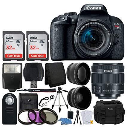 Canon EOS Rebel T7i Digital SLR Camera with EF-S 18-55mm f/4-5.6 IS STM Lens + 58mm Wide Angle Lens + 2x Telephoto Lens + Flash + 64GB SDHC Memory Card + UV Filter Kit + Tripod - Full Accessory Bundle