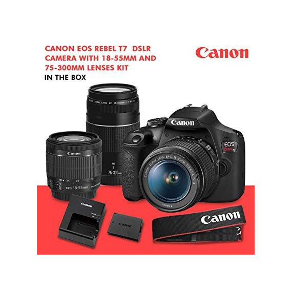 Canon T7 EOS Rebel DSLR Camera with 18-55mm and 75-300mm Lenses Kit + UV Filter Set + Tripods + Battery Power Kit & 64GB SD Card Deluxe Accessory Bundle