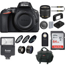 Nikon D5600 24.2MP DX-Format DSLR Camera (Body Only) with Nikon Case + 64GB Card + Flash and Bundle