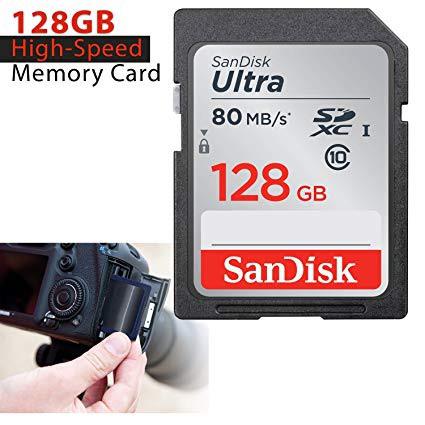 SanDisk 128GB Ultra Class 10 SDXC UHS-I Memory Card + Card Reader for Nikon DSLR Cameras Including Nikon D7500 D7200 D5600 D5500 D850 D750 D500 D810 D3400 D3300 D7100 D7000 D800 D610 D600 D90