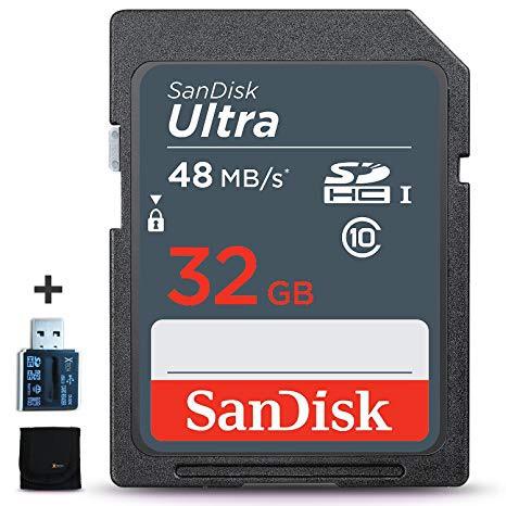SanDisk 32GB Ultra Class 10 SDHC UHS-I Memory Card + Card Reader for Nikon DSLR Cameras Including Nikon D850 D750 D500 D810 D3400 D3300 D5600 D5500 D7500 D7200 D7100 D7000 D800 D610 D600 D80 D90