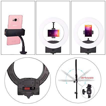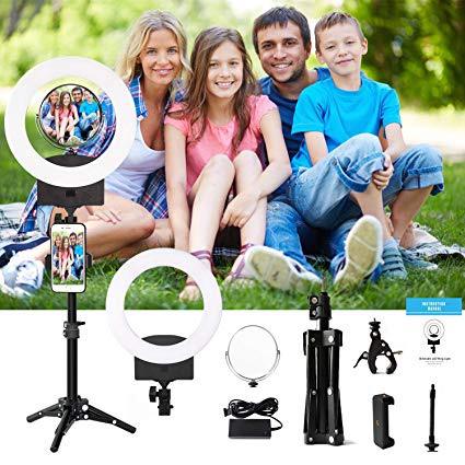 10" 3200K~6500K Dimmable Selfie Ring Light with Adjustable Light Stand,Makeup Mirror and Phone Holder, Perfect Desktop LED Lamp for Vlogs,YouTube Channel,Makeup,Salon …