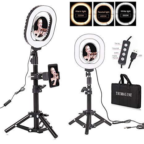 7×6" Selfie Ring Light,Dimmable USB Desktop lighting with Adjustable Stand & Cell Phone Holder for Live Stream/Makeup, for Vlog, YouTube Video/Photography, Compatible with iPhone Android (oval)