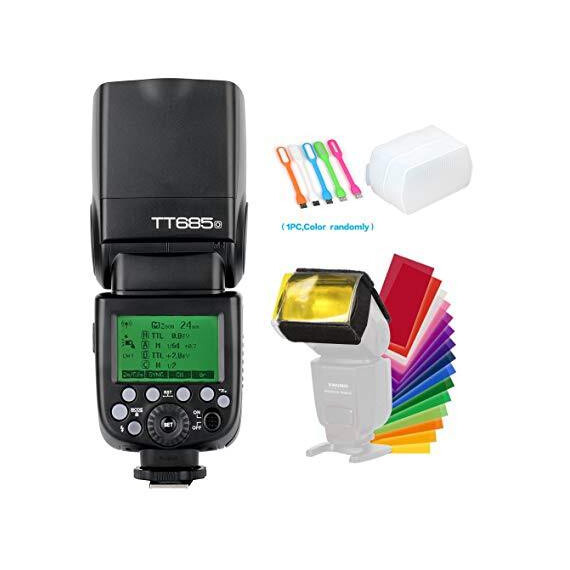 Godox TT685O TTL Camera Flash Speedlite Light High Speed Sync 1/8000s GN60 2.4G Compatible for Olympus Panasonic Camera+Diffuser & Filter +USB LED