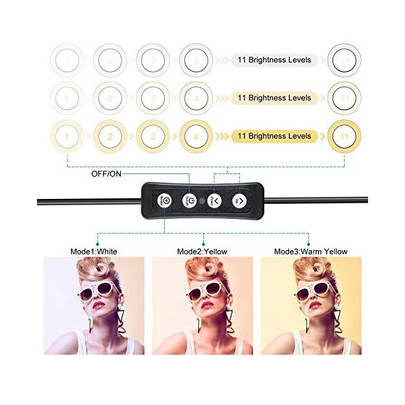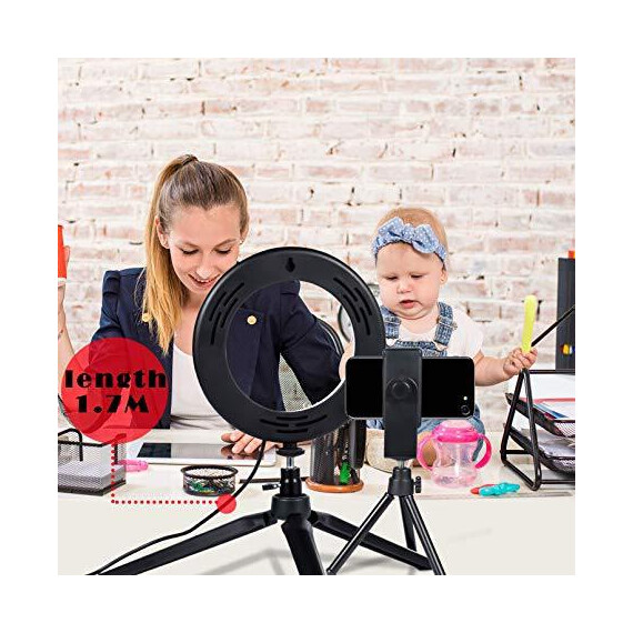 Make sure this fits by entering your model number. 1.【DIMMABLE LED RING LIGHT】- The 6" led selfie ring light kit is great you can adjust brightness and tone it is a perfect light for what you want. you can choose from 3 light color and 10 level brightness for each mode : white light, warm yellow, white + warm yellow, all 3 light colors are equally bright dimming works for YouTube videos and its perfect. 2.【ADJUSTABLE TRIPOD STAND】- Beauty makeup ring light is well constructed and durable,You can easily adjust the height of it and it keeps a secured grip on my phone,it’s easy to use, easy to bring places and gives you quality light for quality content, which makes it a possibility to be used as a folded table tripod or stand it on the floor for indoor and outdoor. 3.【360°ROTATABLE & UNIVERSAL PHONE HOLDER】- The desktop makeup ring light can swivel and be locked into place at any angle. 6" LED Ring Light with cell phone holder compatible with iPhone XR,MAX / 7 Plus, 7, 8, 8 Plus, X, 6, 6s, 5, 5s, 4, 4s /Android Samsung Note 8, S8 / S9 / LG / HTC, etc.making it ideal for professionals for YouTube video recording, camera photography shooting, makeup live streaming. 4.【USB POWERED】- The ring light with a USB cord, so it can plug into any USB outlet: wall, computer, vehicle. laptop, PC, power bank, USB charger, AC adapter, and etc,which mean when you’re indoors it’s cool I plug in the outlet or for outside you use my portable chargers. 5.【LIFETIME WARRANTY!!】Mini led camera desktop ring light making it ideal for professionals who film for IG, YouTube, Facebook Live, etc. Very handy! For the best ring light out there this is the best option! enjoy full satisfaction with our product, Lifetime warranty warranty and lifetime friendly email service or receive your 100% payment back.please kindly note that we are always here for you. THANKS.
