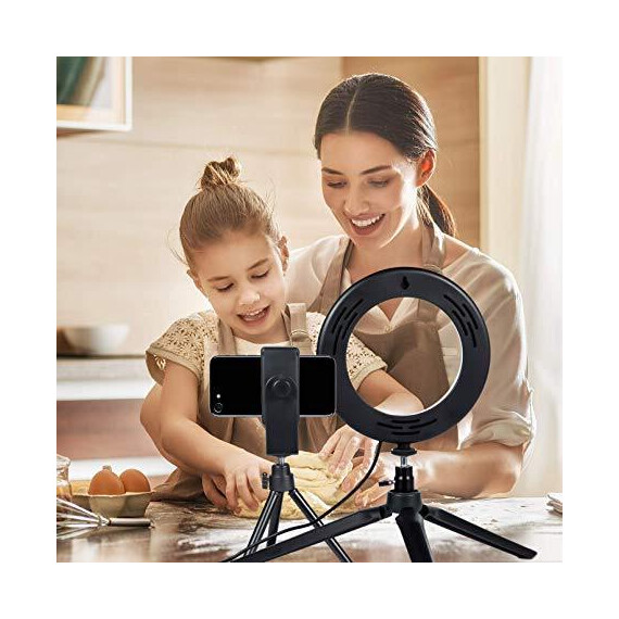 LED Ring Light 6" with Tripod Stand for YouTube Video and Makeup, Mini LED Camera Light with Cell Phone Holder Desktop LED Lamp with 3 Light Modes & 11 Brightness Level (6")