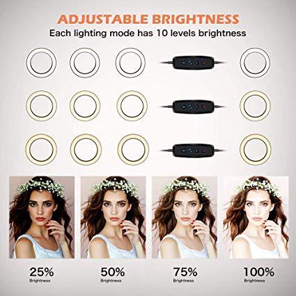 LED Ring Light, UBeesize Dimmable Mini Ring Light for YouTube Videos, Selfie Makeup with iPhone/Android Phone, 3 Colors Mode & 10 Level Brightness Temperature 3000K-5000K