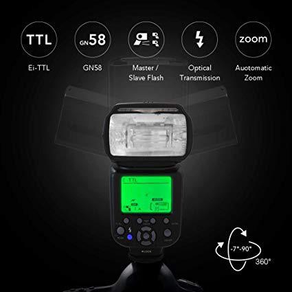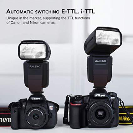 RALENO Flash Speedlite for Canon Nikon DLSR Cameras, E-TTL & i-TTL Dual Mode 1/8000 HSS Flash Speedlight GN58 with LCD Display Standard Hot Shoe Professional Flash kit
