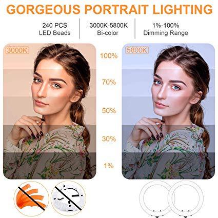 Ring Light,Upgraded Version 19inch with LCD Display Adjustable Color Temperature 3000K-5800K with Stand, YouTube Makeup Dimmable Video LED Light Kit, for Video Shooting, Portrait, Vlog, Selfie