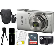 Canon PowerShot ELPH 180 20MP 8X Zoom Digital Camera (Silver) + 16GB Card + Reader + Case + Accessory Bundle