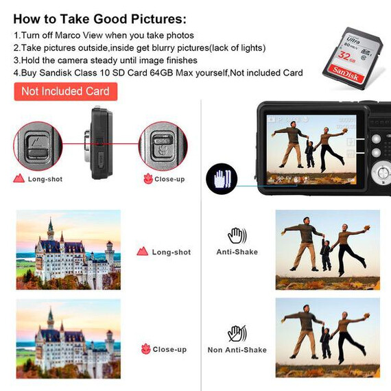 HD Mini Digital Video Cameras for Kids Teens Beginners,Point and Shoot Digital Video Recorder Cameras-Travel,Camping,Outdoors
