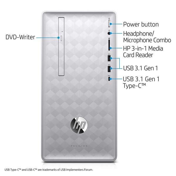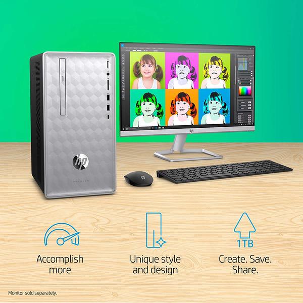 HP Pavilion Desktop Computer, Intel Core i7-8700, 12GB RAM, 1TB Hard Drive, Windows 10 (590-p0070, Silver)