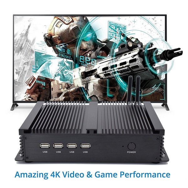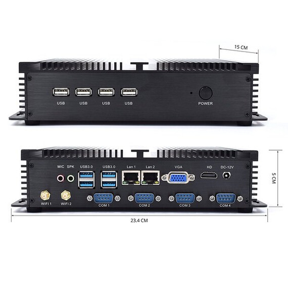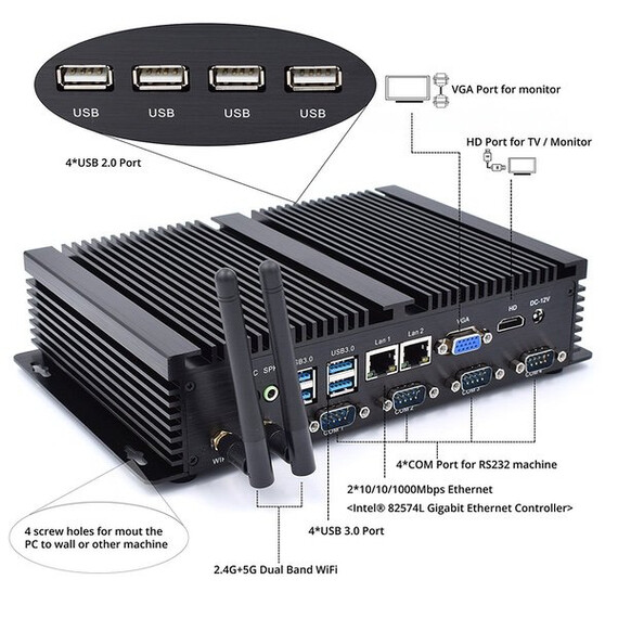 Kingdel Powerful Mini Desktop Computer, Fanless Industrial PC, Intel i5 Dual Core CPU, 8GB RAM, 128GB SSD+1TB HDD, 2xNICs, 4xUSB 3.0, 4xCOM RS232, HDMI, Metal Case, Windows 10 Pro