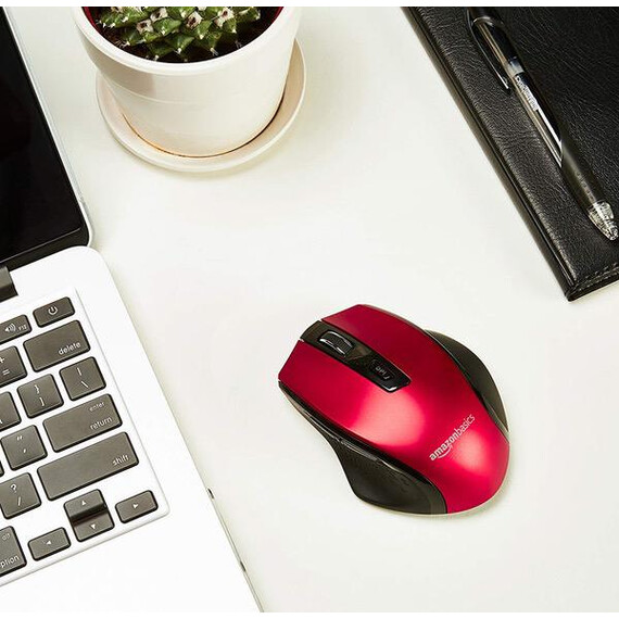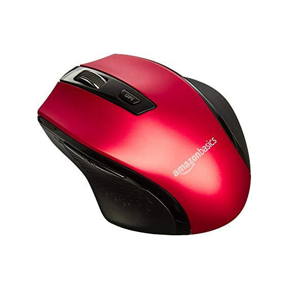 AmazonBasics Ergonomic Wireless PC Mouse - DPI adjustable - Red