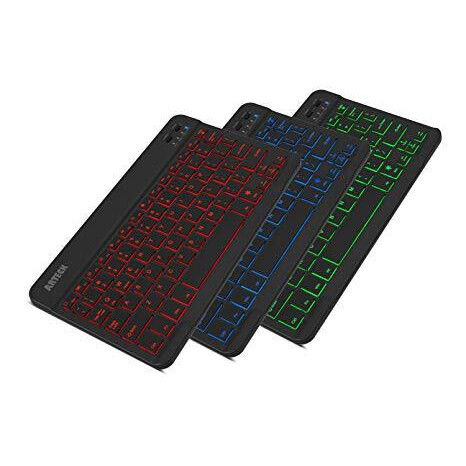 Make sure this fits by entering your model number. 7 Unique Backlight Color: 7 Elegant LED backlight with 2 brightness level and auto sleep feature to maximize power usage. Broad Compatibility: Use with all four major operating systems supporting Bluetooth (iOS, Android, Mac OS and Windows), including iPad Air 3 10.5-inch (2019) / iPad mini 5 (2019) / iPad 9.7 inch iPad 6 2018, iPad 5 2017 / 10.5 inch, 11 inch and 12.9 inch iPad Pro, iPad Air / iPad mini / iPhone / Android Tablets like Samsung Galaxy Tab, Google Nexus / Windows / Mac, etc. 6-Month Battery Life: Rechargeable lithium battery with an industry-high capacity lasts for 6 months between charges (based on 2 hours non-stop use per day and backlit off) Ultra Thin and Light: Compact size (9.7 X 5.9 X 0.24in) and light weight (0.37lb) allows easily carried and packed backpack, messager bag or case. Package contents: Arteck Backlit Bluetooth Keyboard, USB charging cable, welcome guide, our 24-month warranty and friendly customer service.