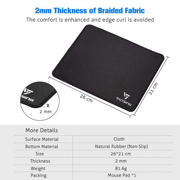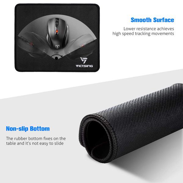 VicTsing Mouse Pad with Stitched Edge, Premium-Textured Mouse Mat, Non-Slip Rubber Base Mousepad for Laptop, Computer & PC, 10.2×8.3×0.08 inches, Black