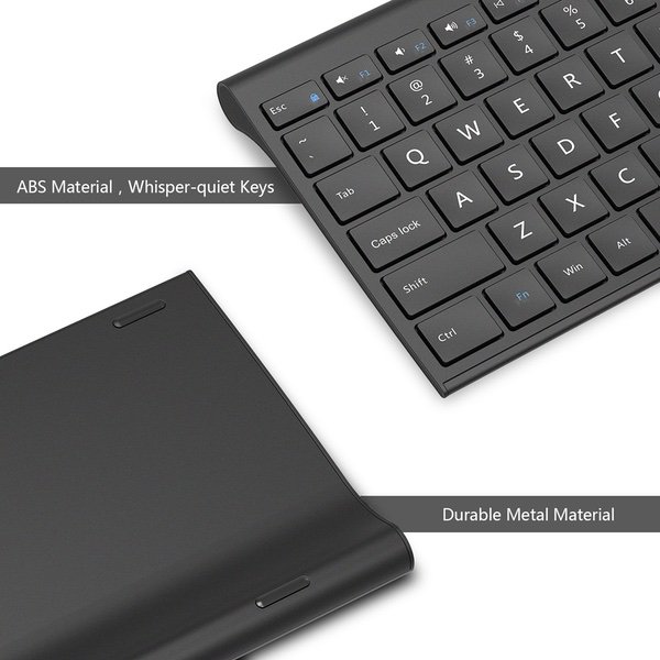 Make sure this fits by entering your model number. WIRELESS KEYBOARD AND MOUSE COMBO: It includes a full-size keyboard and a precision mouse so you can work comfortably away from your computer or laptop. Compatible with Windows XP, Vista, Win 7, Win 8, and Win 10. RELIABLE 2.4GHz WIRELESS CONNECTION: One plug and play USB receiver for both keyboard and mouse without installing any additional software, ensures a strong and reliable connection. ULTRA-SLIM ALUMINUM DESIGN: The keyboard is made of durable aluminum material, ultra-slim and compact design, the thinnest part is just 4mm. Whisper-quiet keys let you enjoy comfortable and smooth typing and clicking. Hot keys keep access to applications and media control in easy reach. ADJUSTABLE DPI SWITCH: Easily adjusts the sensitivity of the mouse between 3 DPI levels (800/1200/1600) to suit both ordinary and gaming needs. Optical laser allows for quick response, precise movement, and smoother tracking. RECHARGABLE BATTERY: The K015 keyboard uses built-in lithium battery, can be easily recharged via USB cable, and the mouse requires 2 x AAA batteries (not included).